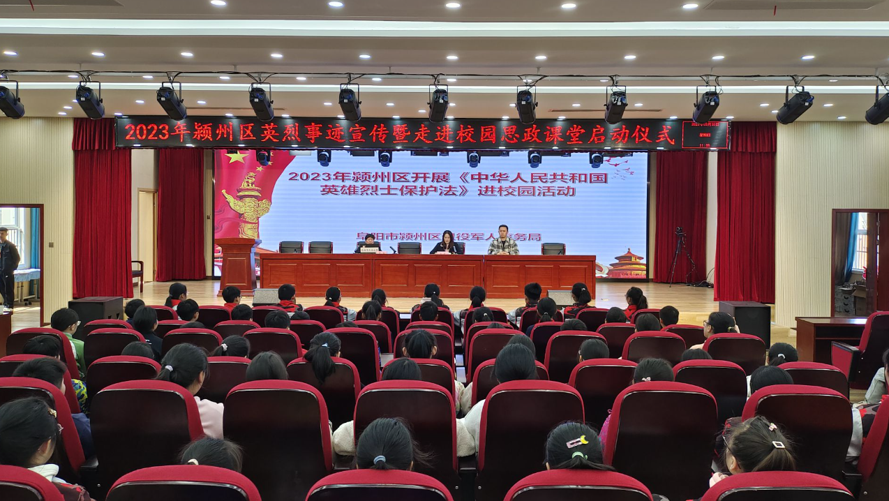 3月30日上午,颍州区退役军人事务局在六里小学举行“英烈事迹宣传暨走进校园思政课堂”启动仪式,这次活动是在当前全区开展“2023·崇尚·清明祭英烈”活动背景下进行的,旨在学习贯彻党的二十大精神和习近平总书记关于烈士褒扬工作的重要指示批示精神,用好用活红色资源,讲好颍州区英雄和烈士的故事,赓续红色基因,凝聚精神力量。