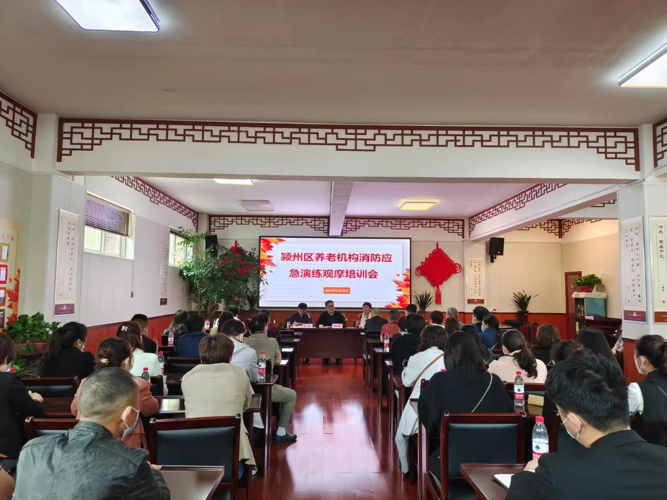 为了进一步提高养老机构管护人员、在院院民的自我保护意识,掌握消防逃生常识,提高面对突发事件时的安全自救和互救能力。4月28日,颍州区民政局在阜阳市红叶林老年公寓举办养老机构消防应急演练观摩培训会。区民政局党组书记、局长韩洪涛,区各养老机构主要负责人参加活动。
