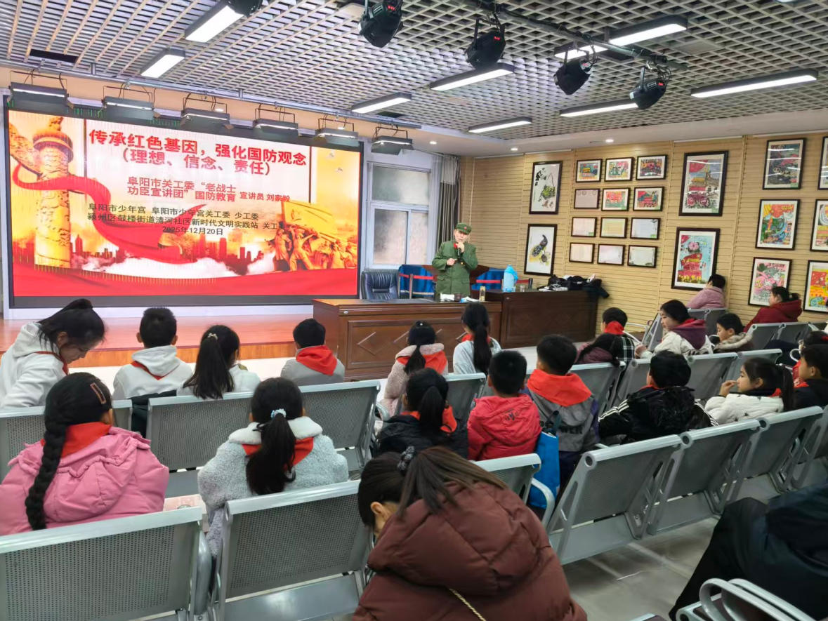 为深入推进爱国主义教育与国防教育融合发展,引导广大青少年厚植爱国情怀、增强国防意识。12月20日,颍州区鼓楼街道清河社区在阜阳市少年宫家长学校开展“传承红色故事,强化国防观念”主题宣讲活动。特邀请阜阳市关工委“老战士”功臣宣讲团宣讲员刘家毅,为少年儿童带来了一场生动的红色主题故事宣讲,活动还特别设置少先队员红色故事分享环节,让红色薪火在童心中代代相传。