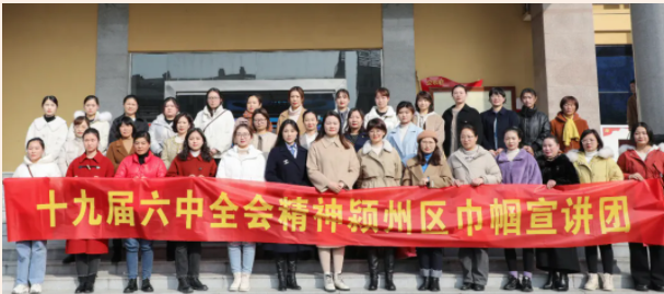 学习宣传贯彻党的十九届六中全会精神,是当前和今后一个时期的重大政治任务。为全面深入学习党的十九届六中全会精神,扎实推进学习贯彻工作,进一步打牢全区广大妇女听党话、跟党走的思想根基,颍州区妇联迅速行动,组建巾帼宣讲团。12月15日上午,颍州区学习贯彻党的十九届六中全会精神巾帼宣讲启动仪式在区委一楼会议中心举行。各乡镇街道妇联主席、区直各单位妇联工作负责人、十九届六中全会精神巾帼宣讲团全体成员120余人参加了启动仪式。