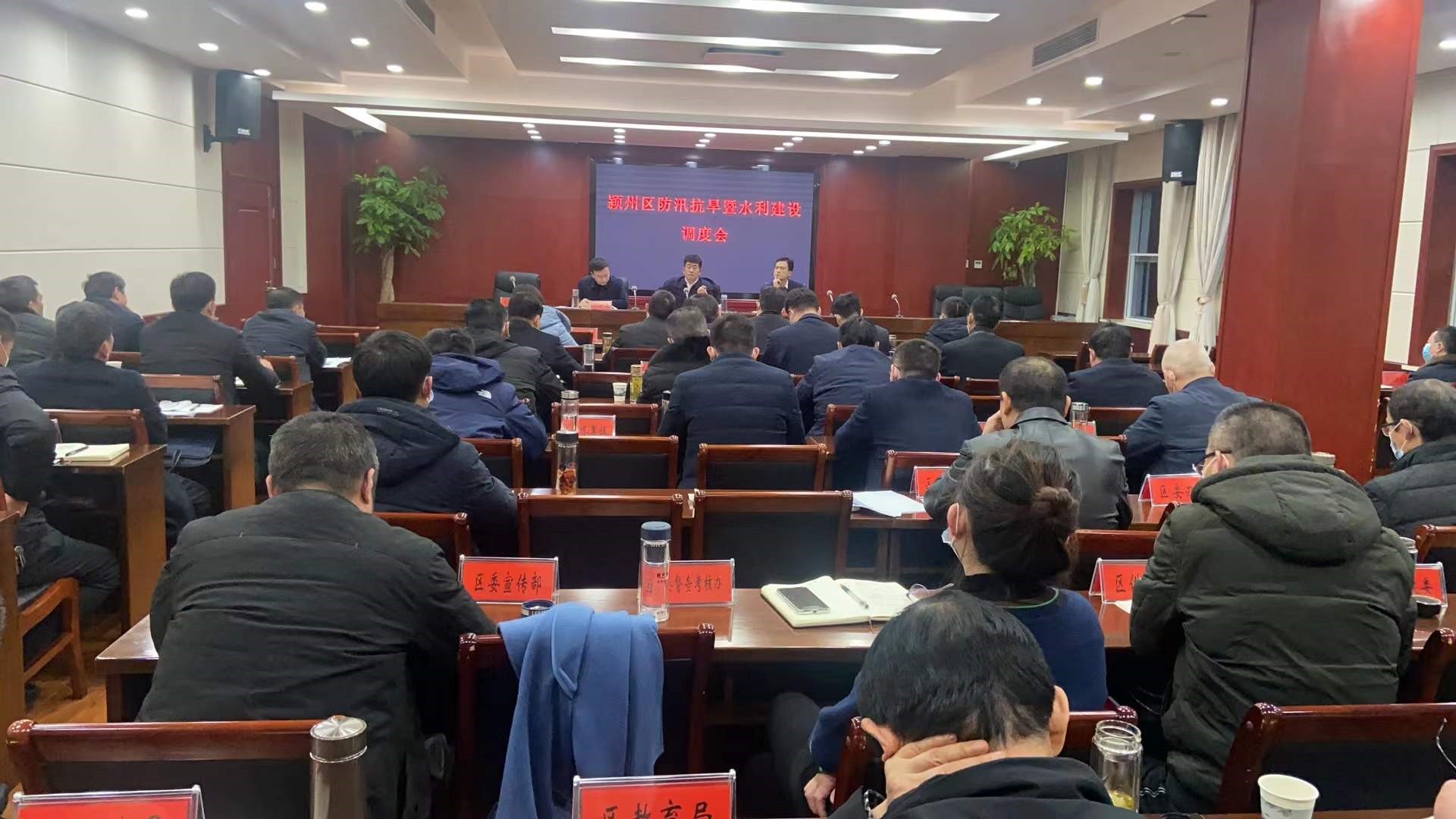 2022年1月13日下午颍州区召开防汛抗旱暨水利建设调度会。区委书记段相霖主持。区领导邢焕新、笪前进,乡镇街道党(工)委负责人,区防汛抗旱指挥部成员单位主要负责人参加会议,会议组织收听收看市委市政府防汛抗旱暨水利建设会议。区水利局、区应急管理局、区城管执法局、区农业农村局相继发言。段相霖提出要求: