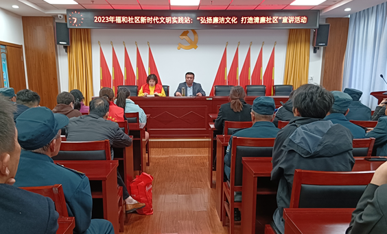 清风洗礼知敬畏,警钟长鸣促廉洁。为深入巩固广大党员干部、社区工作人员廉洁自律意识,提高政治站位,弘扬廉洁文化的教育、引领和浸润作用。4月24日袁集镇福和社区新时代文明实践站开展“弘扬廉洁文化、打造清廉社区”宣讲活动。
