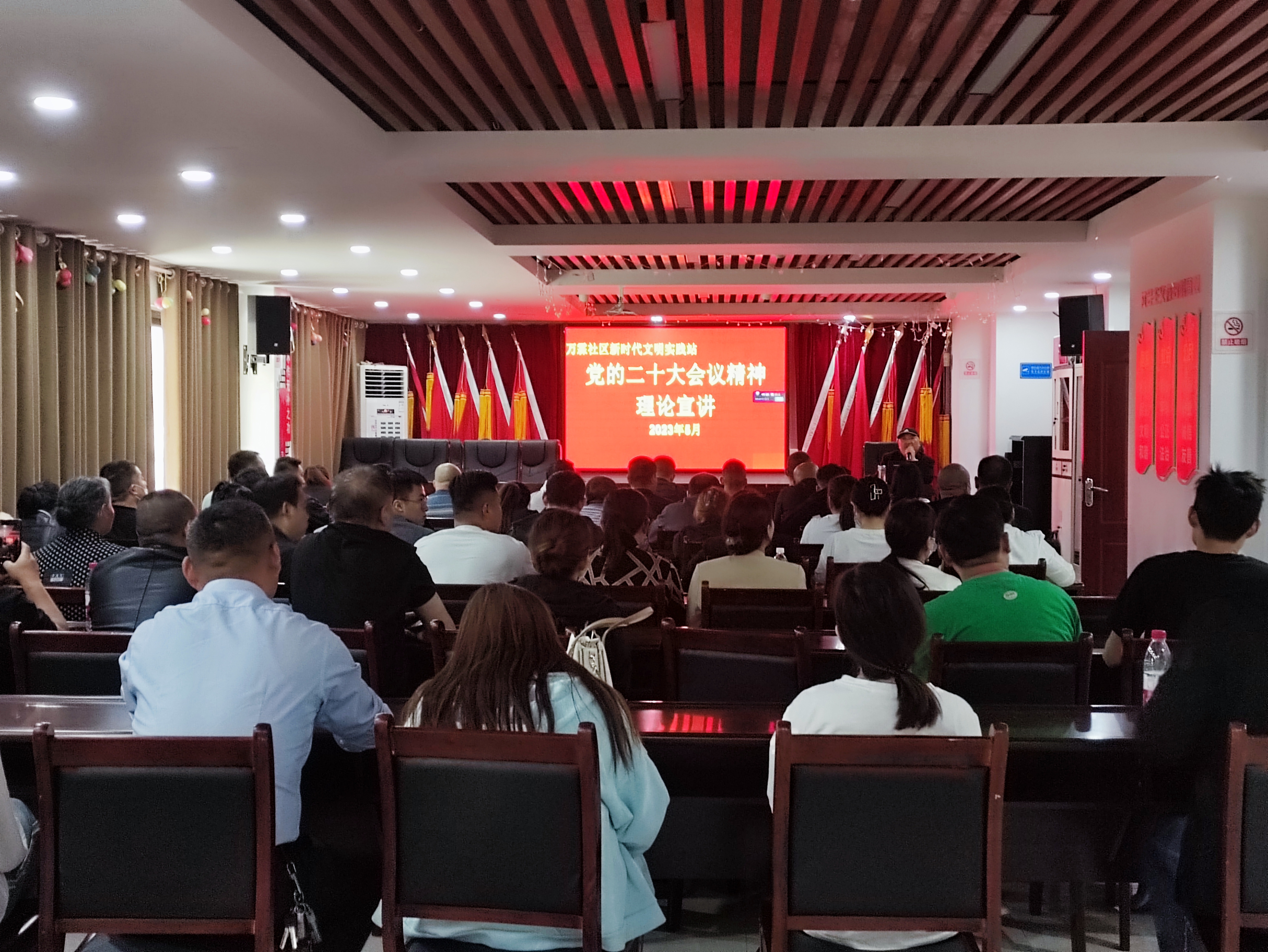2023年5月9日,万霖社区新时代文明实践站召开专题宣讲,传达学习党的二十大会议精神,研究学习贯彻落实措施。习近平总书记在党的二十大开幕会上所作的报告,高屋建瓴、统揽全局,思想深邃、气势磅礴,鼓舞人心、催人奋进,是高举中国特色社会主义伟大旗帜的政治宣言,是全面建设社会主义现代化国家的行动纲领,是以伟大自我革命引领伟大社会革命的战略指引。
