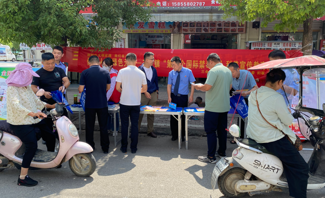 为深入落实毒品预防教育,不断提升全镇群众毒品预防水平,倡导绿色健康的生活方式,营造珍爱生命,远离毒品的禁毒氛围,最大限度减少毒品对社会的危害,在“6·26”国际禁毒日当天,三合镇新时代文明实践所联合平安办、妇联、团委等多部门积极开展以“健康人生 绿色无毒”为主题的禁毒集中宣传活动。