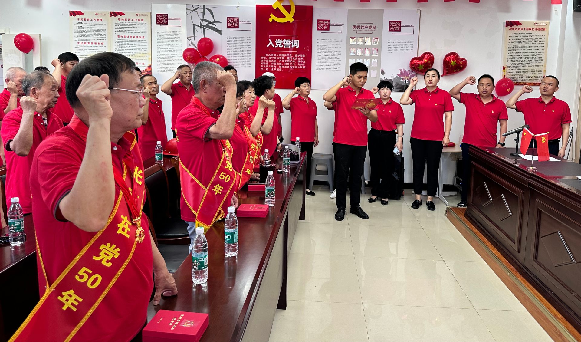 主题活动为蒲学忠等4位党龄达到50周年的老党配戴了金灿灿的“光荣在党50年”纪念章,向他们致以诚挚慰问和崇高敬意。社区党总支副书记周子洋为党员们上了一堂“赓续优良传统、传承红色记忆”主题党课,党员们共同唱响《党员干部就要不怕吃亏》、大合唱《没有共产党就没有新中国》等红色歌曲,展现出了万和社区党员不忘初心、积极向上的精神风貌。