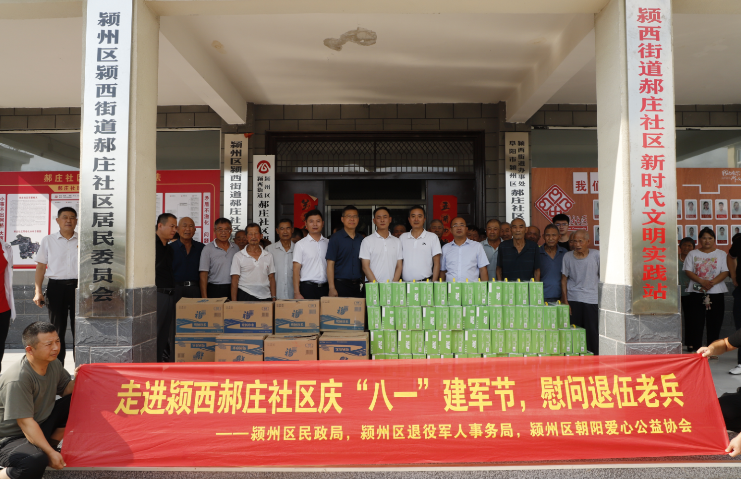 7月31日,中国人民解放军建军96周年来临之际,颍州区民政局、颍州区退役军人事务局、颍州区朝阳爱心公益协会到颍州区郝庄社区慰问退役军人,并为76名退役军人每人送上一份慰问品。