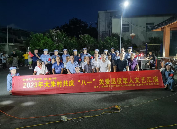 袁集镇大朱村开展庆“八一”,关爱退役军人文艺汇演。“拥军就是筑长城,爱军就是爱国防”,始终坚持拥军优属守初心,拥政爱民固国防,通过开展双拥走访慰问系列活动,不仅增强了军民感情,还营造了“军民鱼水一家亲”的良好社会氛围。