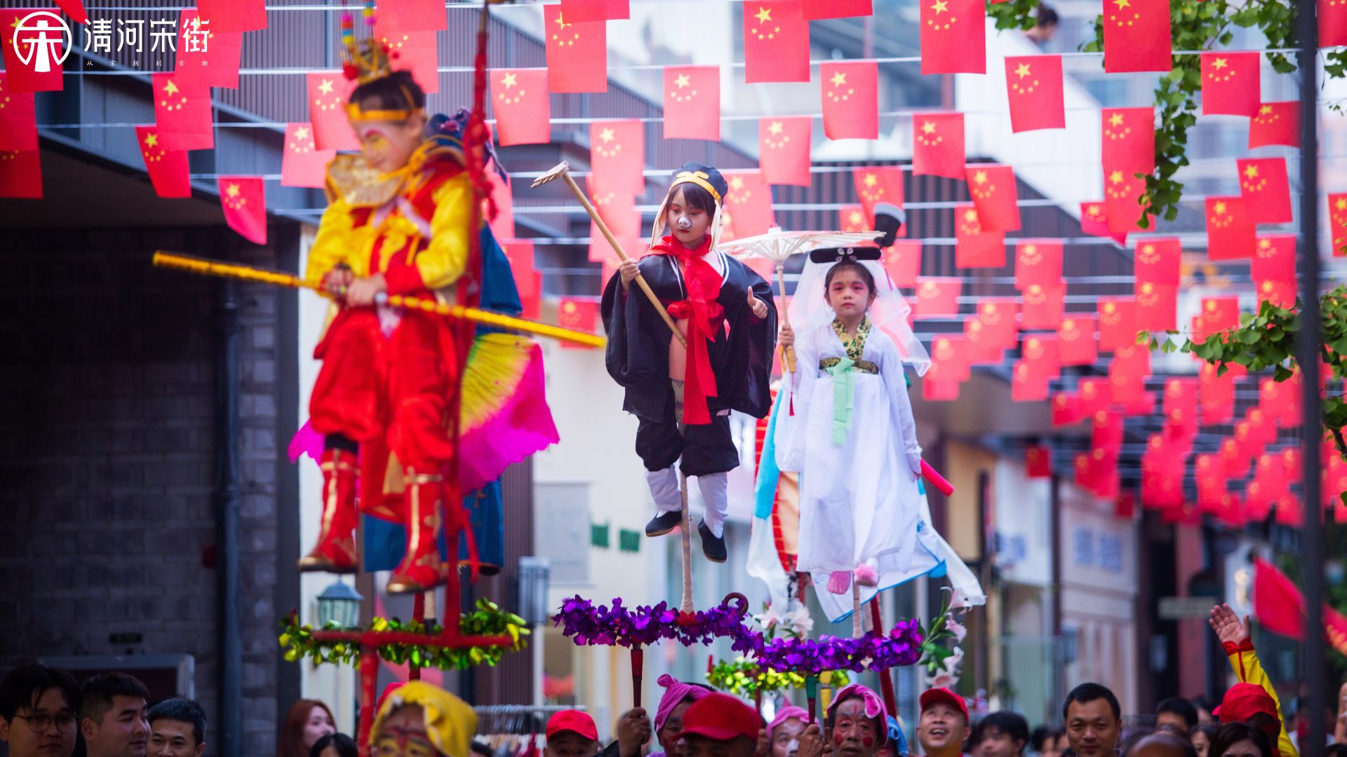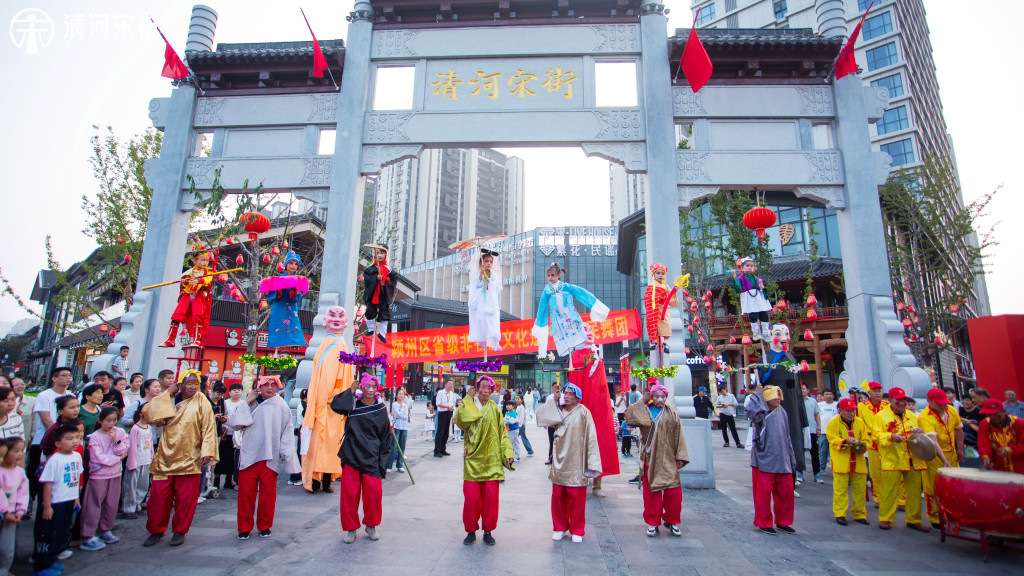 近日,安徽省阜阳市颍州区省级非物质文化遗产代表性项目之一的肘阁民俗表演在夜晚的宋街大放异彩。