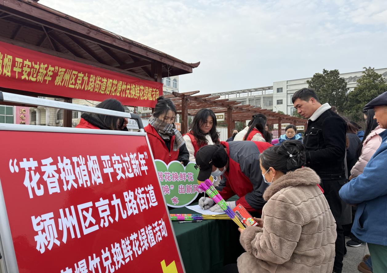 近日,颍州区京九路街道创新开展烟花爆竹兑换鲜花绿植活动,以温情举措落实禁燃禁放工作要求,引导辖区居民树立绿色、文明、安全的过节新风尚。